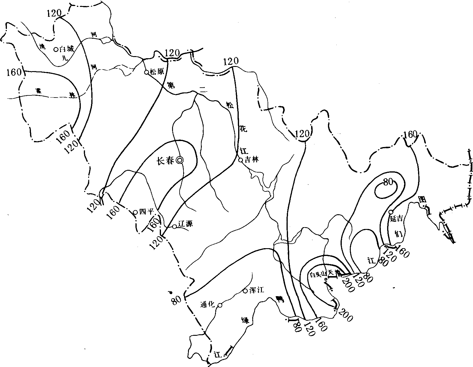 (2) 风能较丰富区。包括大安、前郭、乾安、扶余西部、长岭、双辽、吉林、九台、榆树、双阳、伊通、辽源、东丰、长白、抚松东南部和安图、敦化、汪清、延吉的部分山地。年有效风能贮量一般为400—600千瓦·时/米2,平均有效风能密度量一般为100—130瓦/米2,年有效风速时数为3000—5000小时,有效风速频率大多在50%左右,年最大风速为20—28米/秒,风能以春季最多,秋冬季次之。 (3) 风能可利用区。包括镇赉、前郭和扶余的北部吉林哈达岭以东、龙岗山脉以北,敦化以南,延吉以西的广大山区。年有效风能贮量一般为200—400千瓦·时/米2,平均有效风能密度85—110瓦/米2,年有效风速时数为2 500—4 500小时,有效风速频率一般不足50%,年最大风速18—25米/秒。风能最多出现在春季,次多出现在冬季或秋季。 (4) 风能贫乏区。主要位于通化地区南部。年有效风能贮量一般在200千瓦·时/米2以下,平均有效风能密度为50—80瓦/米2,年有效风速时数为2 000—2 500小时,有效风速频率在30%以下,年最大风速不足20米/秒。此区风能南部小于北部,如靖宇有效风能为184千瓦·时/米2,到通化已降到145千瓦·时/米2,越过老岭至集安,只有67千瓦·时/米2,是吉林省风能资源最少的地方。本区风能以春秋季最多。此区风能贮量少,有效风力时数短,以目前技术水平看,风能可利用价值不大,当然不排除在山间风口处的风能利用。 |