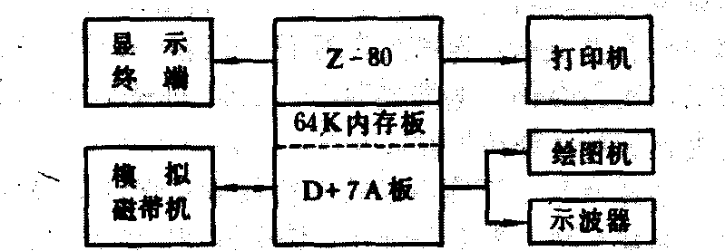 图2 拖拉机功率油耗同步测量系统 信号分析和处理软件 为分析和处理农业机械的检测信号而编制的计算机软件。主要有概率统计分析软件和频谱分析软件,可分别在幅值域和频率域内对随机模拟信号进行统计分析。 概率统计分析软件 为获得各种基本统计量所编制的计算机程序。基本统计量有均值、有效值、均方值、方差、标准差、变异系数、极差、概率密度函数等。图3是一个农机测试数据处理系统的框图。这个系统用计数法求出各基本统计量,采用编译BASIC语言和Z-80汇编语言分别编写计算程序和数据采样处理程序。它可完成各采样点的个数累计,根据频数(个数)表计算出各基本统计量。处理结果由显示器显示、打印机打印输出,或用函数记录仪绘制概率密度和概率分布图形。