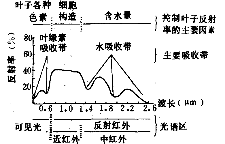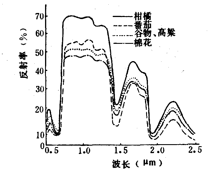 | 释义 | 农作物反射波谱reflectance spectra of crops表示农作物对电磁波各个谱段反射率大小的图形。通常称为作物的反射波谱特性或反射光谱曲线。所有农作物和其他绿色植物均有相似反射波谱。但由于品种不同,各自内在的差异、生长环境不同、以及生长期不同等,其反射波谱也有明显差别。应用农作物的反射波谱特性,可识别不同品种农作物的遥感信息,估算其产量等。