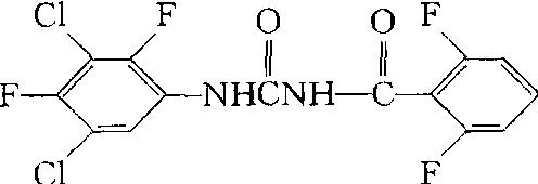 | 释义 | 农梦特teflubenzuron又称Nomolt、Dart。一种昆虫生长调节剂。抑制昆虫体内几丁质合成。化学名称:N-(3,5-二氯-2,4-二氟苯基)-N'-(2,6-二氟苯甲酰)脲。化学结构式如下。原药白色或淡黄结晶体,熔点223~225℃,20℃时蒸气压8×10-10 Pa。20~23℃水中溶解度0.02 mg/L、乙醇中为1.4 g/L、丙酮中为10 g/L。防治各种鳞翅目及鞘翅目的幼虫,包括小菜蛾、菜青虫、温室白粉虱、棉红铃虫、稻苞虫等。低毒,大鼠、小鼠急性口服LD50均>5 000 mg/kg,大鼠经皮LD50>2 000 mg/kg。吸入LC505 038 mg/m3。无致畸、致突变及致癌作用,两代繁殖无异常。两年喂养无作用剂量,大鼠为5.38 mg/(kg·d)。狗为3.15 mg/(kg·d)。