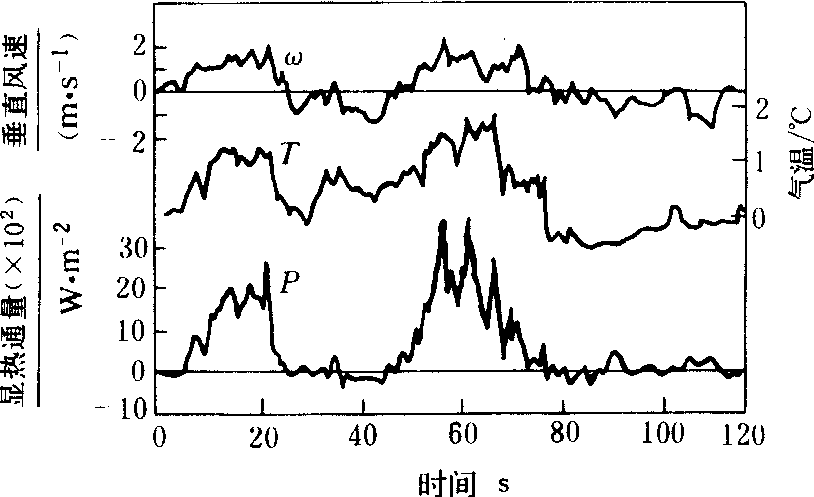 气温脉动T、垂直速度ω和相应瞬时显热通量P的关系 显热通量P决定于乱流交换系数Kh和温度梯度。热交换的方向, 由温度梯度决定。昼间温度梯度为负(温度随高度递减), P为正(从地面指向大气): 夜间温度梯度为正(逆温), P为负(从大气指向地面)。这里以图所示来说明以涡旋进行显热垂直交换的情况。这个图表明120秒钟内气温脉动T、垂直风速ω和相应的瞬时显热通量的变化。这个资料是白昼大气不稳定时的垂直风速迹线(见农田小气候要素分布)。气温的同步记录显示出和垂直风速相同的型式。而且温度脉动的位相,和垂直风速脉动的位相接近。于是,其相关的平均值,在不稳定条件下,上升气流(正ω值)和温度T的增加同步,而下沉气流(负ω值)和温度T的降低同步。在稳定条件下, 许多类似的观测表明,垂直气流ω和气温T的迹线,同风脉动的偏差角一样,变化都比较平稳。ω和T的脉动互为反位相。在上述不稳定情况下,上升和下沉气流的结果,在测量高度上的净热通量是向下的。在中性条件下,ω迹线只是由微小的强迫对流脉动所构成,但实际上T迹线显示出随时间没有变化。这是因为涡旋通过测量高度上、下移动,它们在上升和下降时,调整其温度,使其经常和环境温度保持相同数值。因此, 净热通量为零。近地面每日温度波动, 主要是通过垂直乱流热交换传至大气中的。这种温度波动的向上移动,同土壤中的相似。当温波离地较大距离时,出现时间滞后和振幅减小。然而在空气和土壤中,温波移行距离和速率有相当大的差异。在土壤中受土壤热扩散率(米2/秒)控制, 而在大气中则受涡动扩散率Kh影响,后者的作用对空气中温波更直接有效些。这说明为什么气温波动到达100米高度时,才能显出时间滞后和一点振幅减小。 晴昼气温廓线(见农田小气候要素分布)的日变化是: 日出前接近地面最低温度出现的时候, 大气最低层为逆温。这是由于地面穿过大气“窗”放射长波辐射,使地面冷却而产生辐射逆温。地面低温促使大气低层向下输送显热通量,因此低层大气也随之冷却。如果风平静下来,这种显热损耗可以同辐射通量损耗叠加起来,甚至为辐射通量损耗所取代。日出后, 由于太阳辐射加热, 向上显热通量使最低层空气增暖,并逐渐发展。对流性增暖使邻近地面产生不稳定层,其厚度随时间增长。到中午时增暖使温度递减廓线伸展到整个边界层。在黄昏时地面冷却,重新建立一个地面辐射逆温层,空气仍保持微弱不稳定,随后逆温加强。稳定层增厚,直到日出后,逆温破坏,近地层气温升高, 又重新开始进入新的日温波动。 |