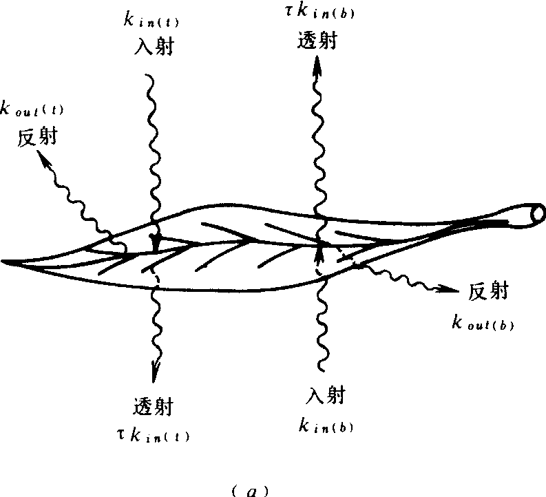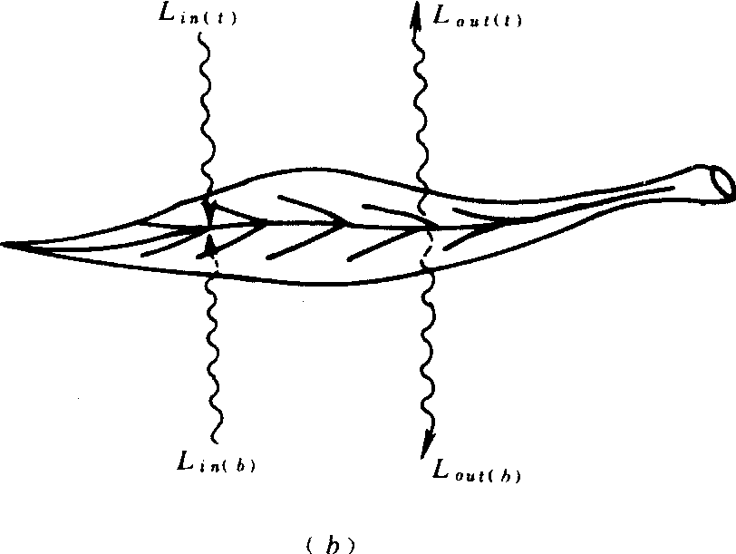 叶片净辐射图 (a)叶片短波净辐射; (b)叶片长波净辐射 以及地面向叶片下表面的长波辐射为: Lin(b)=δσTs4 式中 Ta与Ts分别为空气与地面温度(开)。于是叶片上表面和下表面的长波净辐射分别为: L*(t)= Lin(t)-Lout(t)=3.6σT13(Ta-T1) 和 L*(b)=Lin(b)-Lout(b)=3.6σT13(Ts-T1) 则叶片的长波净辐射为: L1*=L*(1)+L*(b)=3.6σT13(Ta+ Ts-2T1) 因此,叶片的净辐射或辐射平衡方程为: R1=K1*+L1*=〔Kin(t)+Kin(b)〕(1-α-τ)+3.6σT13·(Ta+Ts-2T1)从上面所得方程可知,叶片的净辐射决定于来自上、下方向的短波辐射,叶片反射与透射的能力、叶面温度以及叶片和空气温度差, 以及叶片和地面温度差等。 作物层的辐射平衡 作物群体中的辐射有下列几种:❶直接太阳辐射。叶片缝隙间所观测到的明亮光斑,是由进入作物层中的直接太阳辐射所构成。由于太阳视面角直径有限的缘故,光斑外缘存在一个半影区。这种半影效应,是随测定高度和离顶面叶片的距离而增大。这种阴影面积,随深度增加而增加,光斑面积却随深度增加而减少。 ❷漫射太阳辐射。穿过叶片缝隙而没有受到叶丛影响的漫射太阳辐射, 可以把它看作枝条和叶片之间的天光。 ❸补充辐射。由直接太阳辐射和漫射太阳辐射投射到叶片和地面上而形成的补充辐射。这种辐射的向上部分,构成了作物层的反射辐射。 作物层中,晴天昼间存在上述三种短波辐射输送过程。它们除和入射辐射的条件(即天气条件)、作物辐射特性和地面辐射特性有关外,作物群体结构是确定作物层中辐射过程的一个很重要的因子。晴昼的条件下, 由于光斑和阴影的交错,辐射变化较大。它决定于植株密度,作物上层结构、叶片多少、大小和方向等。 作物群体的长波辐射交换和短波辐射交换不同,长波辐射的散射可略而不计,而作物茎叶和地上其他部分器官的长波辐射则必须考虑,在多数情况下, 大气长波辐射比叶面辐射要小,因而稠密的作物群体的长波净辐射为负值。如果地面辐射大于叶面辐射, 而叶面辐射又大于大气辐射时,向上的长波辐射是递减的,而向下的长波辐射则是增加的,作物群体中所有层次的长波净辐射都是负值,而且最上层的辐射损失最大。就整个作物层的净辐射而言,昼间短波辐射占优势,净辐射从作物上层向下减少,越接近地面,净辐射越小(称递减型);而夜间则自作物顶面向下递增,有效辐射减小,到作物下层有效辐射接近于零(称递增型)。这种情况是由于作物上层对下层有覆盖和隔离作用,阻拦了作物与大气之间的长波辐射交换(见农田小气候要素的垂直分布)。 农田辐射平衡radiation balance in fields又称农田净辐射。农田短波辐射和长波辐射的收支差额。由于常用它来表示农田可用能量的“源”或“库”的极限值,所以它是农田中最重要的能量通量。可以说,农田净辐射是农田物理、生化等变化过程的源泉,也是农田物质生产的能量贮存基础。改造农田辐射平衡,往往是农业增产和防灾的重要途径。可以从单个叶片到整个作物层的辐射交换进行物理分析,以求得对农田辐射收支全貌的理解。事实上,如果在株顶和地表用净辐射表进行测定,取其二者之差,则可得出农田辐射平衡值。 |