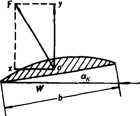 图2 直联式定螺距挂机示意图 1.发动机;2.操纵手柄;3.中间轴;4.中间轴管; 5.离合器; 6.拨叉;7.下箱体; 8.圆锥齿轮; 9.螺旋桨 轮、离合器、换向拨叉、桨轴进行第二次减速,即达到螺旋桨设计转速。一般挂机为700~1 000转/分,螺距219~400毫米;挂桨为700~900转/分,螺距330~360毫米,其动力传递路线像“Z”字。螺旋桨 一般采用三片桨叶,工作时靠桨叶向船后推水,利用水的反作用力推船前进。桨叶外形像椭圆形机翼,以匀速W和某一不大的攻角αk(指切面弦线与运动方向之夹角)在流体中作旋转运动,由于桨叶下表面(叶面)压力较流体运动前方的压力大,而上表面(叶背)处的流体压力小,叶面和叶背间形成压力差,从而产生向上的举力F(图4),F在船舶运动方向的分力X形成向船的推力,水的反力推船前进。