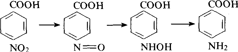 图1 脂肪酸类农药的β-氧化反应 ω-苯氧基脂肪酸除草剂的研究表明,偶碳原子的脂肪族化合物氧化得到的产物大多数是偶碳原子,而奇数碳原子的脂肪酸经β-氧化后生成戊酸酯和丙酸酯衍生物,丙酸酯再氧化成不稳定的苯氧基甲酸酯和苯酚。β-氧化后,不一定使农药失活,有时还能起激活作用。还原作用 在嫌气条件下发生的降解作用。可使醛变成醇,羧基转变成氢氧化物,硝基还原成胺等。如对硝基苯酸经还原作用,转化成对硝基苯胺(图2)。