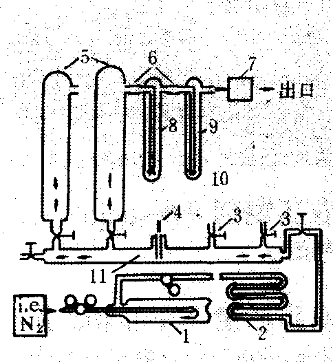 农药进入环境后,在气、水、土各介质间迁移、扩散与再分配的特性,受农药蒸气压影响很大,蒸气压愈高,农药就愈容易从水或土壤环境转向大气空间,这样就容易进一步引起农药的光降解;农药在土壤中的移动性能,也受农药蒸气压的影响。 测定方法 测定蒸气压的方法很多,有气体饱和法、动态法、静态法、蒸气压力计法、蒸气平衡法等。不同的测定方法适用于一定蒸气压范围的化合物。农药的蒸气压一般较低,而且不同农药间蒸气压的变化幅度较宽。气体饱和法可测定蒸气压在1.333×103~1.333×10-6帕之间的化合物,适用于多数农药的蒸气压测定。将农药蒸气饱和在一股缓慢通过的惰性气体中,在一个气流式的密闭系统中,将一定量蒸气中所含的农药截留吸附于溶剂或吸附剂中,然后测定农药含量,进而求算出农药的蒸气压。此法的优点是结果准确,且不受杂质影响。测定蒸气压时,最好做两个温度,设三个重复,并用一个标准品来验证测定系统运行的准确度。蒸气压测定装置见图。