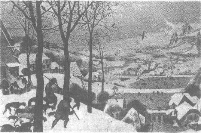 | 释义 | 《冬猎》Donglie尼德兰画家彼得·勃吕盖尔作于1565年,木板油画,藏维也纳美术史美术馆。是一幅描绘北欧静静的隆冬景象的风俗画。在清肃的长空下,大地披上了银装,劳累了一年的农民们,尽情享受着冬闲的乐趣。前景的猎人,瑟缩着身子,肩扛着猎物,正走在归家的山路上。夹杂在群狗当中的一条小狗,在雪地里乱蹦乱跳。“雄鹿旅店”门前,小伙计正在煺猪,快乐的孩子们,盯盯地望着用稻草秸燃起的通红的火焰。远处,穿得鼓鼓囊囊的村人们,正在冰上游戏,打曲棍球、滑冰,度过这不可多得的自由的时光。皑皑白雪,装点在与天空一色的冰面上。枝干交错的树林,把白雪衬托得格外耀眼。一只乌黑的鸟,像是要划破这冻结的空气一飞而过。彼得·勃吕盖尔笔下的这幅冬令图,是于1565年所开始的,描写一年四季的连作之一。他继承了中世纪以来的日历插图和描绘户外例行活动的尼德兰传统,并将这种微型绘画,同以自然的景观为特征的新兴风景画样式结合起来。观者宛如临高远眺,充满深远、开旷的空间感。