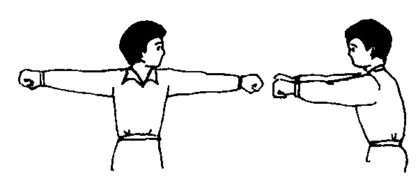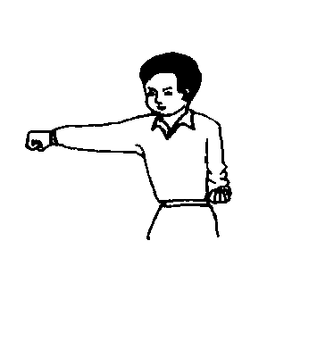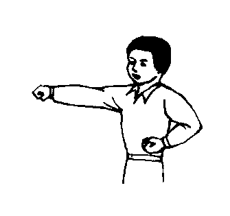 教学重点 强调:❶拳冲出的路线要直。 ❷拳冲出和收回时,肘内侧要擦肋而出,擦肋而收。 ❸两拳依次冲击时,要在一拳收回的同时另一拳冲出。向前为前冲拳;向侧为侧冲拳;向上为上冲拳;以及双冲拳等。 |