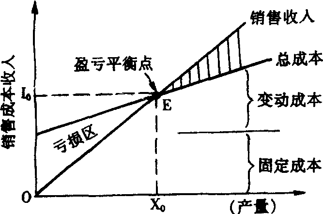 盈亏平衡点,即总销售收入曲线与总成本曲线的交点,也就是企业不盈不亏,又叫保本点。这时的产量叫临界产量,令之为Xo。 图示如下: