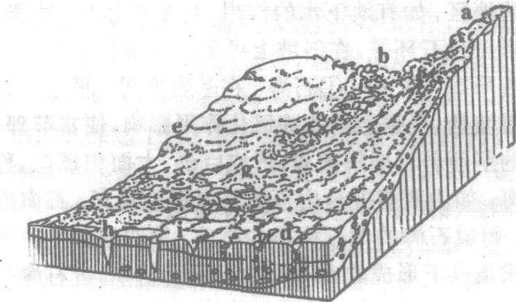 ❷石河:在寒冷气候条件下山坡上的基岩受寒冻风化作用影响,产生大量岩块碎屑,滚落到谷中堆积起来,在重力作用下沿着冻土层顶面,发生整体移动,形成石河。石河的运动速度较低,如瑞士山区的石河中央部分流速为1.35—1.55米/年,边缘部分为0.23—0.25米/年。石河中的岩块,经长期运动,搬运到山麓停积下来,形成石流扇。在冰川发育的地区,当冰川退缩后,聚集在冰斗和U形谷中的冰碛物或由寒冻风化产生的倒石堆,在冻融作用下顺谷地向下移动,叫作石冰川。它的长度可达300—400米,宽度与冰槽谷宽度有关。如阿拉斯加最大的石冰川长达3公里,末端高达60米。石冰川一般流速为1.0—1.5米/年。瑞士测到的石冰川最大流速为5米/年。
