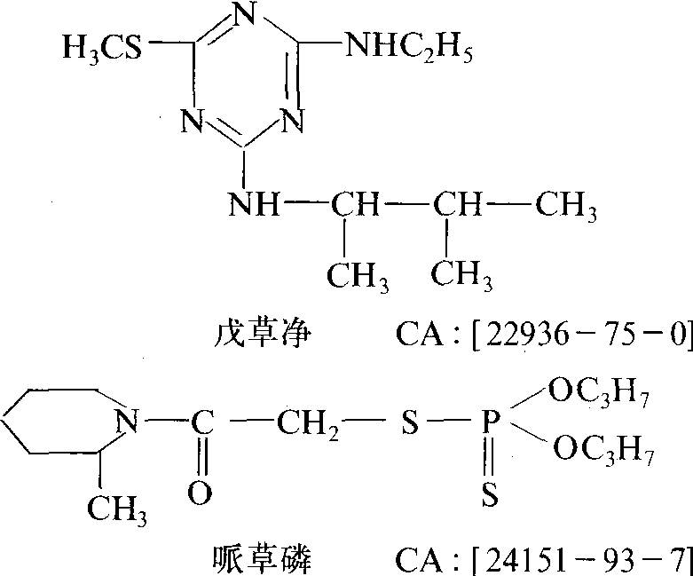 | 释义 | 净哌磷混剂piperophos+dimethametryn哌草磷和戊草净混合制剂,为稻田用选择性广谱除草剂。其他名有威罗生、排草净、哌净合剂等。化学结构式: