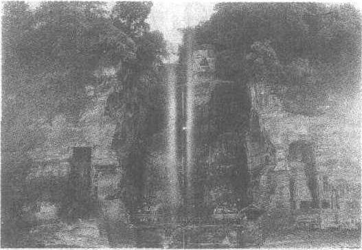 | 释义 | 凌云山弥勒大佛唐开元至贞元年间。佛通高71米。四川省乐山市南岷江东岸凌云山栖鸾峰。大佛依断崖而凿,地处岷江、青衣江、大渡河三江汇合处。据《嘉州凌云寺大佛像》记载,它开凿于唐开元初年(公元713年),完成于贞元十九年(公元803年),历时90年,工程巨大。创建人为凌云寺海通和尚,主持完成者是唐德宗时剑南西川节度使韦皋。当时所费的人力、物力、财力从大佛的巨大规模即可看出。佛从头至脚底58.7米,脸宽7.8米,肩宽24米,眉心痣直径0.3米,脚背上可坐100多人。大佛为坐像,直身拔背,双腿略宽于肩,双手扶膝,头微昂,目视前方,表情肃穆。全身比例匀称,雕刻风格与如此之巨的造像相符,简练而粗犷,其恢宏的气势似可威震山河。人们在这雍容大度的佛像前,不禁要赞叹1200多年前众多无名创作者留下的巨作,这不仅在国内久负盛名,即使在世界上也是引人注目的最大石刻佛像之一。