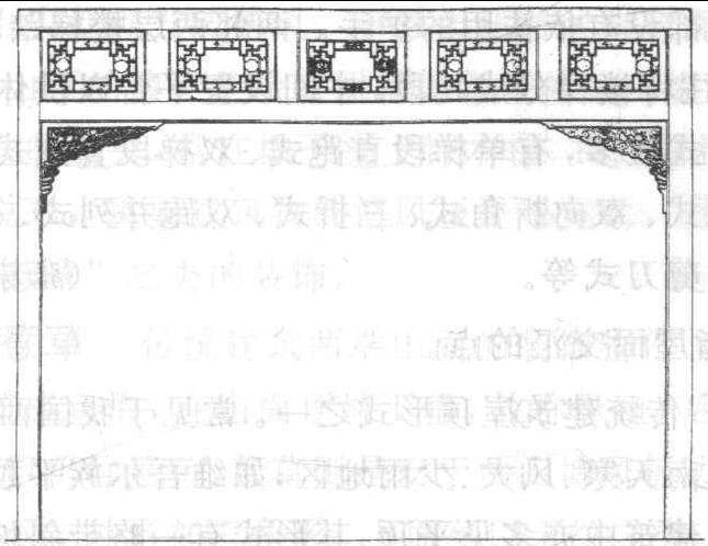 南方又称“天弯罩”。通常用于进深不大的房间,以隔断室内空间。主要由槛框、花罩、横披等部分组成。其特点是:整组罩子仅有两根腿子(即抱框),腿子与上槛、挂空槛组成几案式框架,两根抱框恰似几案的两条腿,安装在挂空槛下的花罩,横贯两抱框之间。