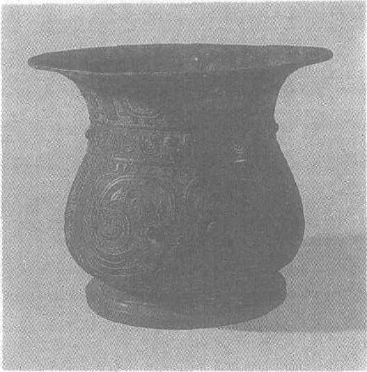 西周。古代盛酒器。高34厘米,口径41.4厘米。1976年江苏省丹阳出土。镇江博物馆藏。此尊大侈口,束颈,腹下垂膨出,低圈足。口沿下为卷曲反顾的长鸟。颈部为立鸟,并有分解的鸟首、鸟尾形纹饰,中间加以卷角小兽首。腹部饰相对顾首凤纹。圈足为两道弦纹。此器鸟纹形态各异,别开生面。