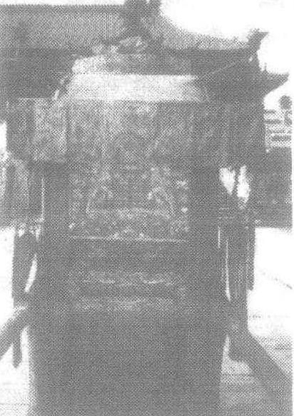 | 释义 | 凤舆清朝皇后乘用的轿子。因其上饰金凤图案,且又为人抬行之轿子,故名。皇后亲自参加蚕桑活动时乘用凤舆。其制,木质,漆明黄色,高七尺。穹盖二重,高一尺五寸五分。上层为八角形,下层为四角形,皆饰金凤。冠金圆顶,镂以云文,衔以杂宝。檐长五尺,宽三尺七寸六分,垂幨以明黄缎,上下皆销金凤。支撑穹盖的四柱高四尺七寸,皆绣金凤。窗棂四面,网以青紃。前窗为双扉,高二尺六寸,启扉则棂悬之,内漆浅红色。舆中设朱漆座位,高一尺七寸。两边椅高一尺八寸,漆明黄色,上绘金凤。坐具亦明黄缎上绣彩凤。前加抚轼,漆以明黄色,加绘金凤。直车辕二,长一丈七尺二寸五分。二大横杆,长八尺, 中为相向的铁䤹双金凤; 四小横杆,长三尺; 八肩杆,长五尺一寸。杆皆漆明黄色,横钻以铜,纵加铜䤹金凤饰首尾。奉抬风辇者十六人。