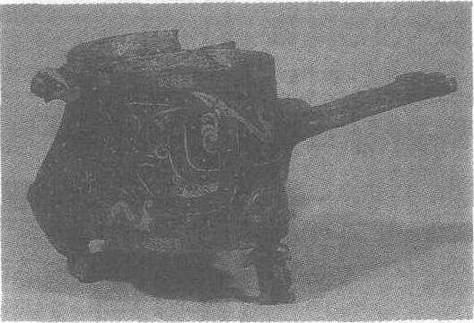 凤鸟形双联漆杯湖北省荆门市包山楚墓出土,湖北省荆门市博物馆藏。战国漆器。鸟昂首,展双翅,口衔玉珠,两足落地,其背负双杯,两杯之间有孔相通。鸟身遍刻鳞纹,除尾翼底部髹红漆外,其余皆为黑漆地。用红、黄、金3色彩绘卷云纹、点纹等;杯内壁髹红漆,杯外壁分别以黄、红、黑漆绘波浪纹、云龙纹等。全器构思奇巧,描绘精细,为战国漆器中少见。 |