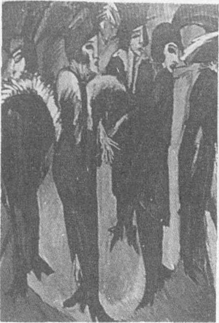 街上五女人 1913年作 凯尔希奈1880—1938KaierxinaiE ·L·kirchner德国画家。生于阿沙芬堡。曾在德累斯顿和慕尼黑学习。1905年成为“桥社”的创始人之一。从1917年直到1938年住瑞士,后因病痛之苦而自杀。凯尔希奈在野兽派画家和原始美术影响下,成为德国表现主义的最重要代表,留下许多粗犷、雄健的木版画。 |