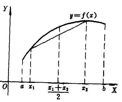 在上述意义下,凸函数的图象上任意一段弧都位于这段弧所对的弦的上方(如图).
