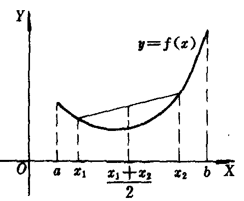 凹函数的图象上,任意一段弧都位于这段弧所对的弦的下方(如图).