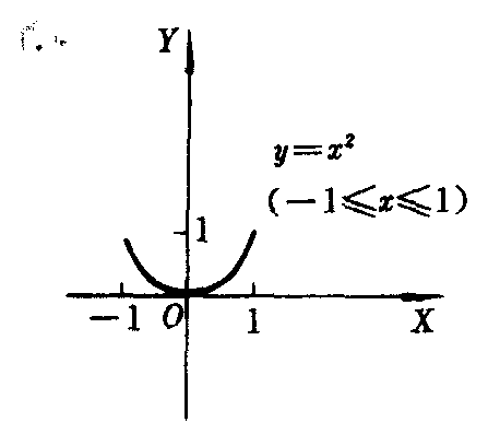 对于函数f(x)和g(x),当且仅当它们有相同的定义域,并且对在它们的定义域内的每一个x,f(x)和g(x)的值相等,就说f(x)和g(x)是相等的.例如,函数y=|x|,z=,它们的定义域都是实数集R,且对每个x∈R来说,|x|=.因此这两个函数是相等的.又如,函数f1(x)=x2(x∈R),f2(x)=x2(x≥0),f3(x)=x2,(-1≤x≤1).这三个函数,虽然给出它们的解析式是一样的,但是由于它们定义域不一样,因此它们是不同的函数,从它们的图象更容易看出它们不相等(如图1、图2、图3).