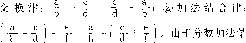 法也是已知两个加数的和与其中一个加数, 求另一个加数的运算,分数减法是分数加法的逆运算。分数减法是整数减法的推广。在非负有理数集合中,分数减法运算,只有在被减数不小于减数的条件下,才可以施行,这时,运算的结果是唯一的。也就是说,两个分数a/b ![]() 的。 分数减法的运算法则: 同分母分数相减, 分子相减,分母不变;异分母分数相减,通常用两个分母的最 小公倍数作公分母,先进行通分,然后按同分母分数相 ![]() 整数减法的运算性质可推广到分数减法: ❶一个分数减去几个分数的和, 可以从这个分数里依次减去 ![]() ❷几个分数的和减去一个分数, 可以从和中的任何一个加数里减去这个分数(在能减的情况下)再与其余的 ![]() 这个数里减去差里的被减数(在能减的情况下),再加上差里的减数;或者先加上差里的减数,再减去差里的 ![]() 把这两个分数的分子的积作分子,分母的积作分母,所 ![]() 积的因数。由于积的分子是确定整数的积,分母是确定的不为零的整数的积,仍是一个不为零的整数,这样的分数是存在的,而且是唯一的。所以,分数乘法的运算总可以施行, 而且结果是唯一的。 分数乘法的运算法则:两个分数相乘,就是把它们的分子、分母分别相乘, 作积的分子和分母。 分数乘法中有带分数的,先化带分数为假分数,然 ![]() 分数乘法中有一个因数是整数的, 可以把整数看 ![]() 整数乘法的运算定律可以推广到分数乘法: ❶乘 ![]() 立,分数乘法的定义可以推广到求若干个分数的积。例 ![]() 则也可推广为:若干个分数相乘,就是把这几个分数分子连乘的结果作积的分子,分母连乘的结果作积的分母。应用分数乘法的运算律,可以简化某些计算。例: ![]()