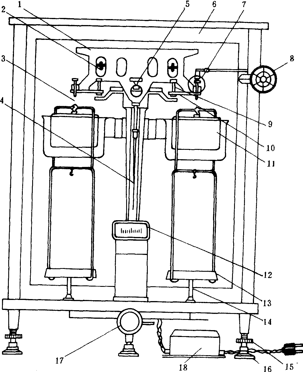 半自动电光天平 1 横梁 2 平衡螺丝 3 吊耳 4 指针 5 支点刀 6框罩 7 圈码 8指数盘 9 支柱 10托叶 11 阻尼器 12 投影屏 13秤盘 14盘托15螺旋脚 16垫脚 17 升降枢 18 变压器200 g,能准确称取的最小质量为0.1 mg,精度为三级。其主要部件有: ❶横梁 用铝铜合金制成,起平衡和承载重物的作用。梁上装有3个棱形的玛瑙刀,正中的称为中刀或支点刀,刀口向下; 另外两个分别在与中刀等距离的梁的两端,故称边刀或承重刀,刀口向上。3个刀口必须完全平行且位于同一水平面上。横梁下方装有细长的指针。 ❷立柱 它垂直固定在底座上,是横梁的起落架。柱的上方嵌有玛瑙平板,与梁的中刀接触。柱上部装有能升降的托梁架,在天平不使用时可托住横梁,使刀口脱离与柱的接触以减少磨损。 ❸ 悬挂系统 包括吊耳、空气阻尼器和秤盘。两个边刀通过吊耳承受秤盘和重物。空气阻尼器由两个金属圆筒构成,外筒固定在立柱上,内筒略小于外筒,悬于吊耳下。两筒间隙均匀,互不接触。当启动天平时,内筒可随横梁的倾斜而上下移动。由于筒内空气阻力的作用,使横梁能较快地停摆而达到平衡。秤盘可放置砝码和被称量物。 ❹升降枢 它是天平的制动系统。开启升降枢时,横梁下降,3个刀口与相应的承受点接触; 盘托下降,使吊耳和秤盘可自由摆动; 接通光源,在光屏上可读取标尺的平衡位置。此时天平进入工作状态。关闭升降枢时,横梁被托起,刀口与承受点脱离; 盘托上升托住秤盘,使之停止摆动; 光源被切断,光屏变黑。此时,天平进入休止状态。 ❺ 读数系统 固定在横梁中央的指针下端,装有缩微标尺。光源可通过光学系统将标尺上的刻度放大并投射到光屏上。屏中央有一条垂直刻线,标尺投影与刻线重合处即为天平的平衡位置。 ❻ 砝码 每台天平都附有一盒配套的砝码,其质量最小为1g,最大为100g。通过转动天平右上方的指数盘,可向天平右盘上加 10~990 mg的环码。 分析天平的计量性能可用稳定性、灵敏性、准确性和示值变动性等指标来衡量。稳定性是指天平横梁在受到扰动后能自动回复到初始平衡位置的能力。灵敏性是指天平能觉察出微小质量变化的能力,天平所能觉察到的两秤盘间的质量差值越小,天平就越灵敏。准确性是指天平的两臂长度不完全相等所造成的不等臂性误差的大小。示值变动性是指天平在载荷不变的情况下,多次开关天平时平衡点的变动情况,因此它表明天平称量的可靠性。 分析天平analytical balance最大载荷在100或200 g时能称量到0.1或0.2 mg的天平。相当于中国国家规定的三、四级天平。分析天平按其结构不同可分为摇摆天平、空气阻尼天平和电光天平3种。电光天平又分双盘部分机械加码天平、双盘全部机械加码天平和不等臂单盘天平3种。 |