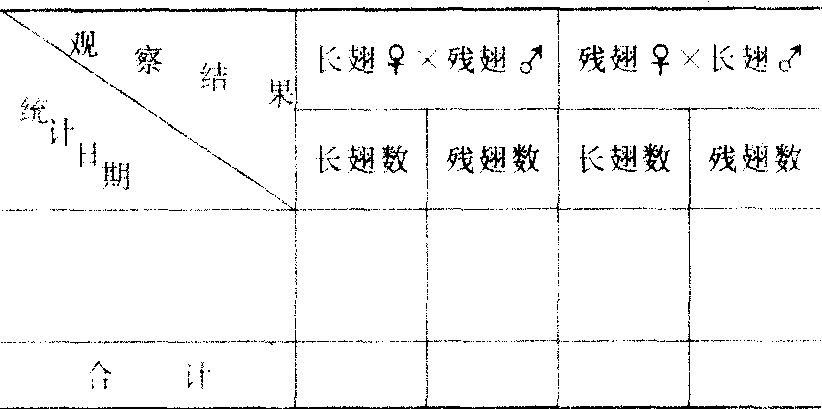2代和测交后代定期(每隔1或2天)收集观察、和统计,将调查结果分别填入下表: