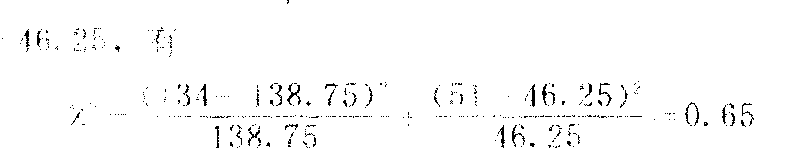 为3.84,此处实得X2值0.65,小于