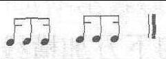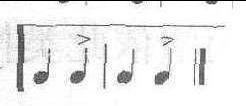 切分音改变了原来节拍的强弱规律,使本应是弱拍或弱位置的音变为强拍或强音,因此,切分节奏即是将弱拍变强拍。当节拍中的强拍或强部分休止,或者弱拍带有重音记号时,也可形成切分节奏或切分效果。切分音的写法是打破单位拍的音群,用一个音符。当切分音跨小节时,用连线连接。时值较短的切分音,则不打破单位拍的音群。例:切分音:2/4 4/4 跨小节切分音:2/4 短时值切分音:2/4 切分效果(休止和弱拍重音):2/4 4/4