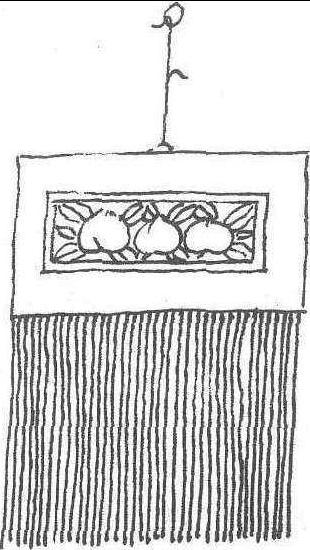 幌子 在绘有彩桃的黄色木板下端,系上红纸穗。表示此店为切面铺。