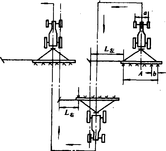 图2 液压折合式起落机构示意图 划印器工作时,操作拖拉机提升器手杆,供油给划印器油缸,在油缸推动下划印器臂绕O点旋转而逐渐升起,同时,绕A点旋转的钢丝绳(或链条)逐渐松放,使划印器圆盘和臂在自重作用下,绕铰接点B折合,从而由工作状态变为升起状态。反之,操作手杆使油缸往内缩时,放下划印器臂,钢丝绳逐渐被拉紧,使划印器圆盘和臂绕B点伸直,变成工作状态。 划印器row marker播种机工作时,在未播地一侧地面划出印迹的装置。这种印迹可作为播种机组下一行程的引进标志,以保证邻接播行的行距准确。划印器的工作部分为球面圆盘或锄铲,装在划印器臂上,臂的伸出长度可按需要调整。播种机机架两侧各铰接着一个划印器,可根据需要交替工作。 |
