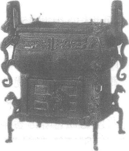 | 释义 | 刖刑奴隶守门鬲西周中期制品,1976年在陕西省扶风县庄白窖藏出土,现为陕西省历史博物馆收藏。鬲高17.7厘米,口横长11.9厘米,宽9.2厘米。器体由上下两部分构成,上部为长方形,侈口,下腹略鼓,肩附双立耳。下部为四兽腿支撑的方座,形似房屋,两侧开方形窗孔,正面有两扇门扉,右扇门扉上塑一守门者,为受过刖刑(即断足)的奴隶形象。门有栓,可启闭。形制较为奇特。器体四角各有一组立雕,上为伏龙,回首卷尾; 底塑怪兽,眉目似猴,钩喙曲角,上下呼应。口沿下饰浮雕窃曲纹,地衬云雷纹,间饰短扉棱。方座背面饰镂孔窃曲纹,两侧窗孔周围饰线刻云纹。通体雕饰细致,使器体增添了威严、肃穆的气氛,尤其是刖刑守门者形象较为罕见,构思独到,起到特殊的装饰效果。)