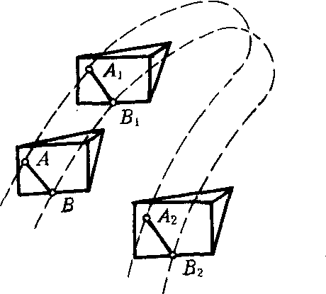 | 释义 | 刚体的平动gangti de pingdong刚体内任一直线在运动过程中始终与原来方向保持平行的运动。又称平行移动。图中AB是在平动刚体内任意选择的一根直线,在不同的时刻,AB线始终与初始方向平行,即:AB∥A1B1∥A2B2。在平直轨道上行驶的车厢的运动,被桥式起重机吊起的重物的运动,内燃机气缸里活塞的运动,车刀在车床上的运动等,都是平动。平动刚体内一点的轨迹不一定是直线,可以是任意的空间曲线,但各点的轨迹形状完全相同。每一瞬时,各点有相同的速度和加速度,因此,刚体内任意一点的运动可以代表整个刚体的运动,也就是说,刚体平动问题可归结为质点的运动问题。