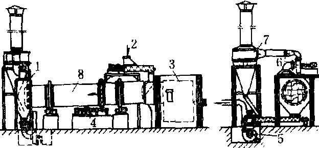 风机; 6.排风机; 7.尘埃分离器; 8.干燥筒筒体