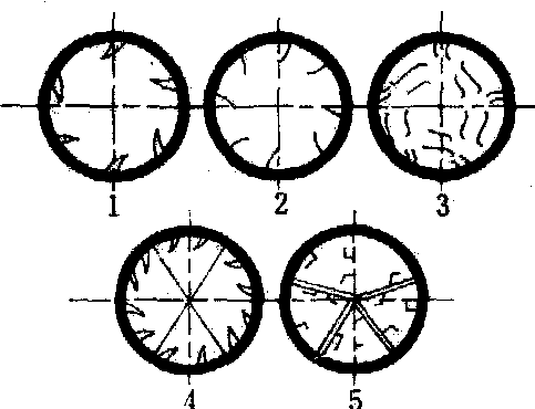 在使用。但其结构型式有所改变。用燃烧煤气、煤油,或者木屑和油的混合物作为热源。辊筒内装有导板,用以使刨花分散及运动。导板型式有多种(图2)。当辊筒旋转时,刨花从上一个叶片落到下一个叶片上,随着叶片作顺时针方向连续旋转,并向排料方向前进。这种干燥机的特点是刨花在筒内滞留时间长,一般在30分钟以上,装料容量大。如使用200℃以下的炉气,着火危险便大大降低。
