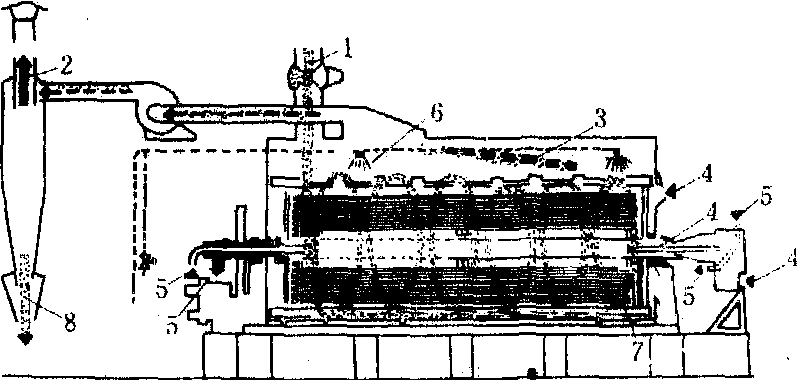 5.热交换器; 6.风机; 7.旋风分离器;