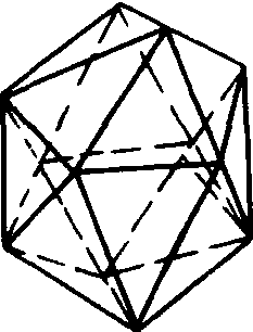 解: 注意到每个面由三条棱围成,因此,可以建立面与棱之间的对应关系, 使得每个面对应包围它的3条棱,此外,每条棱又是两个相邻面的公共边,这就是说,在上述对应中,每条棱都出现过2次,于是可得2×棱数=3×面数=60,故正二十面体有30条棱。