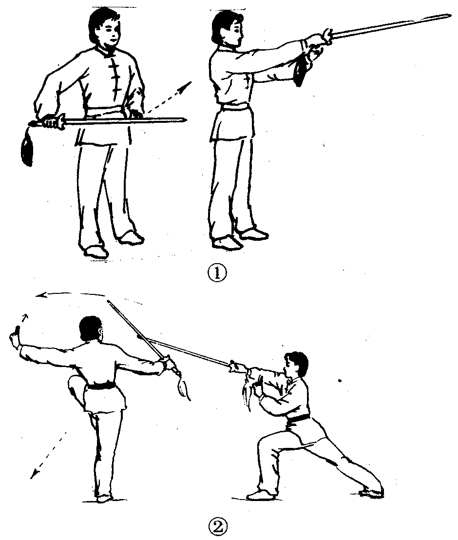 | 释义 | 刺剑剑法之 一。主要动作有弓步直刺、歇步下刺、跳步平刺等。其基本练习为两脚左右开立,左手插腰,右手握剑于体侧,剑尖朝前。以立剑(剑刃朝上下)或平剑(剑刃朝左右)向前直刺。动作要领:剑刺出后要与臂成一直线,力达剑尖。 刺剑剑法之一。是以剑尖为力点,做直线进攻的动作。刺剑在武术古籍中被称为四大剑母(最基本剑法)和太极剑十三式(十三种基本剑法)之一。现在的各种剑术套路中,刺剑是出现次数最多的剑法之一。《武术竞赛规则》规定,在自选剑术套路中,刺剑是必须出现的剑法之一。动作过程:刺剑的形式很多,从剑的状态分为剑刃朝上下的立刺剑和剑刃朝左右的平刺剑两种。从攻击的部位又可分为剑尖高与头平的上刺剑,剑尖高与肩平的平刺剑(图2—4—96—