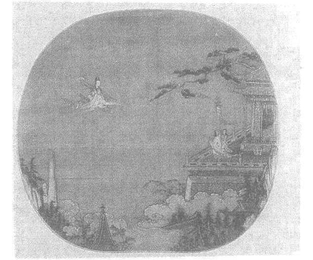 | 释义 | 刺绣瑶台跨鹤图南宋。纵25.4厘米,横27.4厘米。辽宁省博物馆藏。以棕色绢为地,用彩色绣线和捻金线绣制成纨扇形画幅:云雾漂渺,气象万千,一仙女跨鹤飞来,面容慈祥,在楼阁瑶台之上,二眉目清秀女童作迎仙状。此图以齐平针绣主体纹,还采用单线的松针、杉叶松针绣。屋瓦以捻金线为垅,用细线钉于画面。砖纹、斗拱、勾阑华板、卷帘皆以单线盘轮廓压绣面。屋顶、戗脊、普柏枋、立柱、阑额等以捻金线的钉金绣针法为主,以金箔为地钉线勾边。绮窗先铺白线,上以黄色单线编绣窗格。室内暗壁用墨笔描绘。绣工精巧,配色和谐,针法匹配奇特,细妙入神,光华相映。