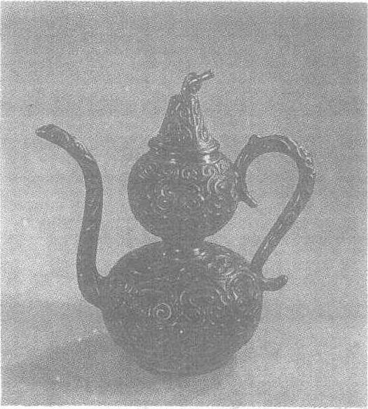 | 释义 | 剔犀乌间朱线葫芦式执壶明晚期。通高21.5厘米,口径4厘米。北京故宫博物院藏。金属胎,葫芦形腹,钟形盖上设一卷蔓形纽,曲流,倒“S”形柄。表面遍饰剔犀乌间朱线(即黑漆间显露红色线条)如意卷云。此执壶造型雅致、趣味盎然,纹饰回旋流畅、舒卷自如,颇具美感。剔犀见“‘张成造’剔犀云纹盒”条目。