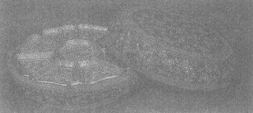 清。高17.6厘米,口径39.5厘米。北京中国历史博物馆藏。清宫用器。葵花形,双层,内置一个葵花形漆盘,盘上托八个色泽艳丽的彩绘扇形盘和一个圆盘。盒内髹黑漆,盒外在褐色花纹、棕色冰裂纹地上遍剔红色梅花纹、雷纹和菱形纹,华美俏丽,十分别致。剔红见“剔红兽环钵”条目。
