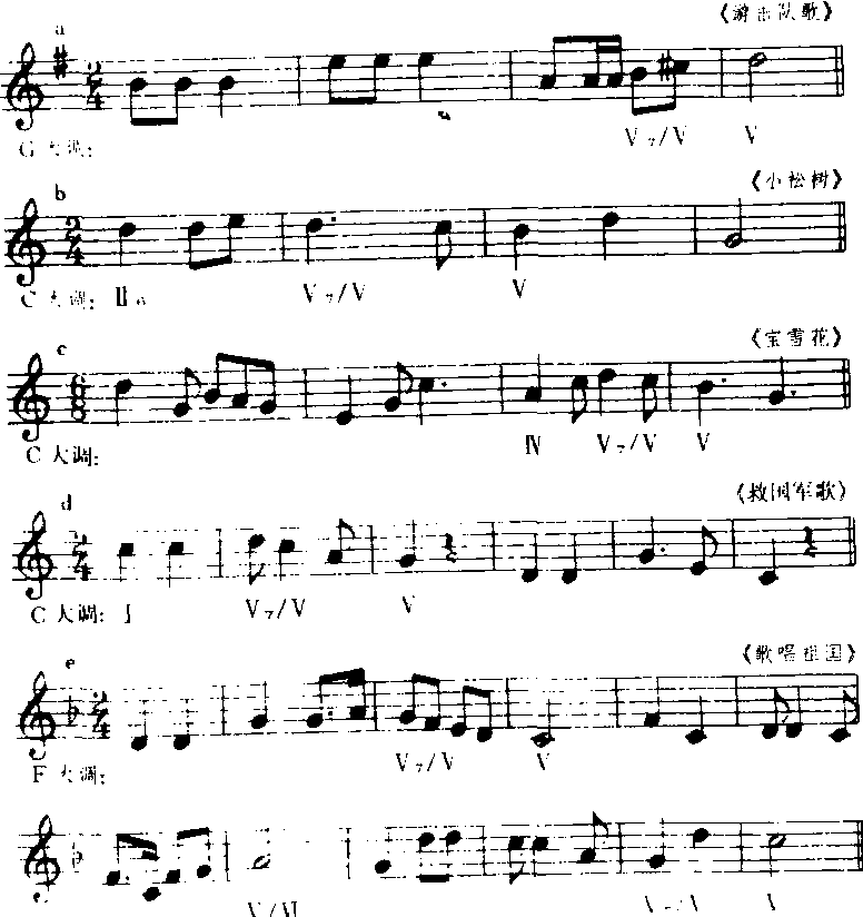 现举歌曲例子说明: