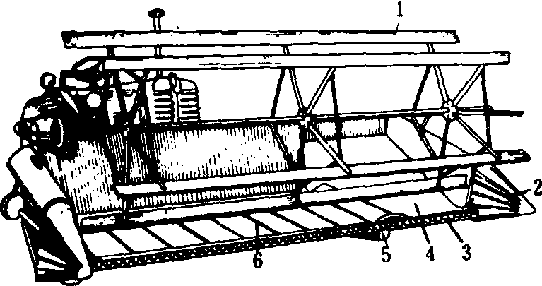 悬挂式割晒机 1.拨禾轮;2.分禾器; 3.切割器; 4.排禾口;5.托板; 6.输送带 牵引式割晒机的割台位于拖拉机的右后侧,呈偏牵引状态。其割台结构与悬挂式割晒机基本相同,但割台是由其两侧的行走轮支承,并设有牵引架。排禾口设在割台的左侧或中部,排禾口设在中部时,采用左、右两条输送带,由两侧向中间输送禾秆。有的割台不设排禾口,禾秆由输送带向左输送到机器的外侧,落下形成禾条。牵引式割晒机的幅宽为4~7米。 自走式割晒机自带动力和行走装置,割台位于机器的前方,整机结构紧凑合理,作业灵活,幅宽最大可达12米,有的机型为便于实行并铺作业,其输送带分左、右两段,输送带的位置和输送方向可改变,可实现左侧放铺、右侧放铺或中央放铺。它们全由液压驱动,可在行进中实现输送带位置的移动和改变转向。 割晒机收割对象为青湿的谷物,故要求它有较强的切割和输送能力。其割刀平均速度为2~3米/秒,拨禾轮线速度为2~2.8米/秒,输送带速度为1.8~2.5米/秒。每米幅宽每小时可收割小麦5~6亩。 割晒机windrower卧式收割机的一种特殊型式,主要用于两段收获。用割晒机收割后的禾秆,形成穗尾搭接的禾条铺放在割茬上,经通风晾晒后,由装有捡拾器的联合收割机捡拾脱粒。割晒机收割时留茬较高,约15~25 cm,以利禾条通风晾晒。禾条铺放大小应与带捡拾器的联合收割机相适应。割晒机有牵引式、悬挂式和自走式等类型。其结构和工作过程与卧式收割机基本相同,但只用一排输送带使禾秆向一侧或中央排出。 割晒机割下小麦禾秆并铺放于割茬上的收割机械。出现于20世纪20年代末。中国于20世纪50年代开始生产。分为自走式、牵引式和悬挂式3种,割幅宽度分别为12 m、4~7 m和4 m。割晒机留茬高度通常为15~25 cm。 |
