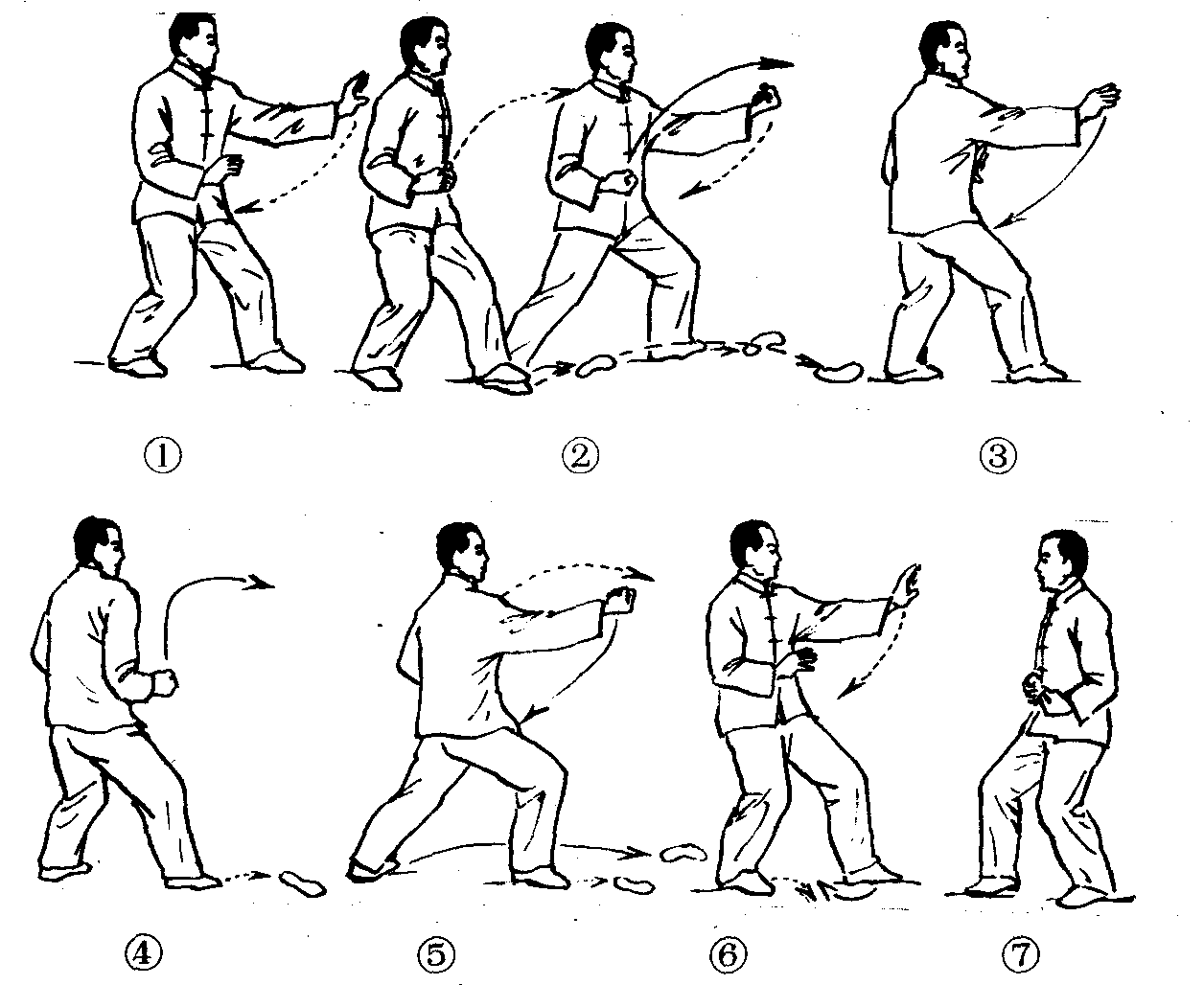 ❶出手和收手时,手臂内侧均要擦肋而行。