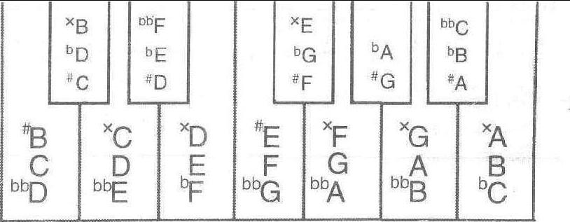 指音高相同而意义和名称、记法不同的音。亦称同音异名,如升C和降D。等音是根据十二平均律得来的,因为只有在半音相等的情况下,变化音级才有可能和基本音级或另一变化音级相等。从一键盘图上,我们可以清楚地看到每一个音及其等音,除升G和降A只有两个音以外,其他各音均有三个音。例:等音键盘图