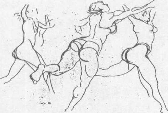 《海滨》 (意)古图索 动态速写Dongtai suxie表现人物动作姿态的速写。动态速写,以捕捉平时常见的人物动态为主,同时也包括体育、舞蹈等速写。速写本是习作、素材性质,由于其行笔迅速,动态传神,而使作品独具魅力。有些如体育、舞蹈速写或特殊的场景速写成为新闻报道式的独立作品见于报刊。画动态速写,主要依靠对形象记忆的当场默写,要注意三种情况:一是身体变化不大,只是手、臂有小动作的动态。这是初学者练习捕捉动态速写的最好的写生对象。首先要注意观察其身体动态特征,先画不变的部位,然后捕捉手、臂动态,注意其具有特点的瞬间动作。二是循环反复的规则动态。应捕捉规律强的较为明显动态的起点或止点。它有一个小小的停顿,便于观察和捕捉,而且有其动作的典型性。三是不规则动态。这是一闪而过不重复出现的动态,就要完全依靠记忆画。
