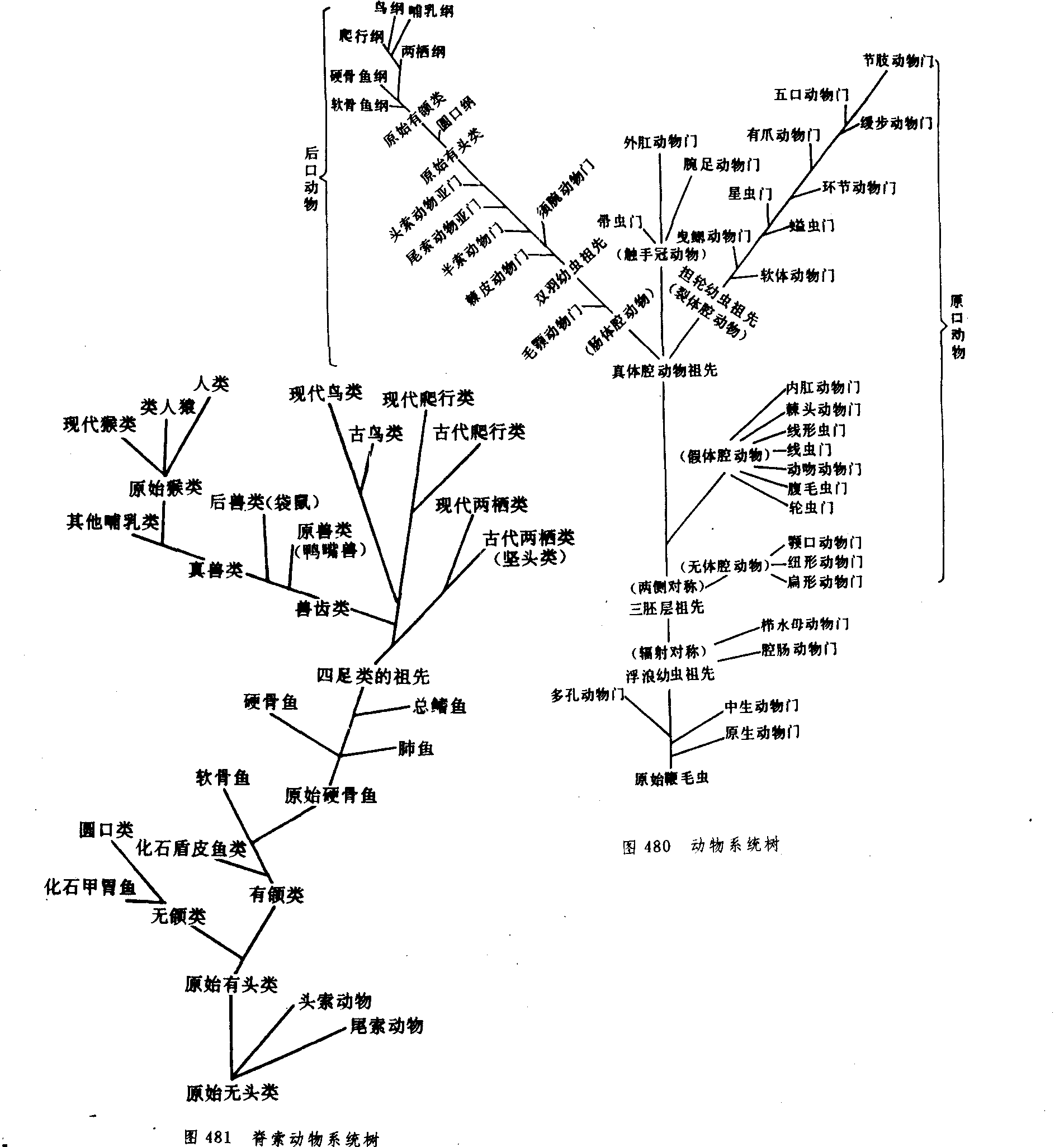 动物学家把现代生存的动物,根据它们的进化的历史,人为地构成1个系统树。系统树下部的分枝代表古老动物,它们保持固有的原始结构。系统树末端的分枝,是在不同历史发展阶段从主干上分出来的。当构建动物界的系统树时,不仅要考虑到现代成年动物和化石成年动物的结构,以及它们周围的环境条件,而且还要考虑到它们个体发育的特点。只有这样全面考虑,才能使系统树更接近于实际情况。