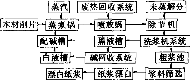 提高蒸煮温度可以加快蒸煮速度,缩短蒸煮周期,在其他蒸煮条件相同时,蒸煮温度越高,蒸煮速度越快,但温度过高则使纸浆得率降低,纸浆强度下降。木材蒸煮温度一般在170℃左右。蒸煮时间由升温时间和保温时间构成。升温时间长短与药液渗透有关,一般为1.5~2.5小时。在最高温度下的保温时间,与原料种类、用碱量、硫化度、碱浓度、蒸煮最高温度及纸浆种类有关。蒸煮温度与时间可用参数——H—因子来表示。H—因子是蒸煮相对反应速度常数对蒸煮时间的积分面积。其他蒸煮条件相同时,只要H—因子相同,则可得到相同木质素含量和得率的纸浆。蒸煮中常用H—因子来控制蒸煮终点。 蒸煮后的浆料,经黑液提取设备(常用真空洗浆系统)提取黑液。然后在多效真空蒸发器及直接蒸发器中将黑液蒸发至浓度为50~60%。浓缩黑液与芒硝混合,喷射至碱回收炉中燃烧,芒硝被还原为硫化钠。熔融物由炉底流出,其成分为碳酸钠和硫化钠,溶于水中称为绿液。碱回收炉燃烧产生的热量,由蒸汽锅炉回收。澄清后的绿液用石灰乳苛化,将碳酸钠转变为氢氧化钠,将生成的碳酸钙(白泥)沉淀后则得到白液(氢氧化钠和硫化钠),用于蒸煮。 亚硫酸盐法制浆 以亚硫酸氢盐和亚硫酸作蒸煮药剂的制浆方法。根据蒸煮液pH值不同,可分为酸性亚硫酸盐法、亚硫酸氢盐法、中性亚硫酸盐法和碱性亚硫酸盐法。狭义的亚硫酸盐法是指酸性亚硫酸盐法。 酸性亚硫酸盐法制得的纸浆色浅,易漂白,浆得率较高。针叶树材亚硫酸废液可以制造酒精、酵母、香兰素及其他粘合剂、水泥减水剂、石油钻井用泥浆减粘剂等。但对原料的适应性差,蒸煮时间长,需要耐酸设备;废液回收困难,污染问题不易解决。此法逐渐被硫酸盐法取代。采用可溶性盐基(如镁、铵、钠等)代替钙基解决废液回收问题;采用多级蒸煮以扩大原料品种的使用范围。酸性亚硫酸盐法制浆过程如下: