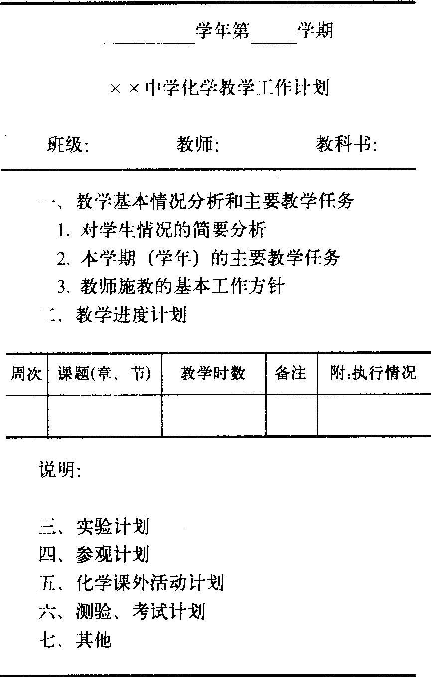 | 词条 | 化学教学工作计划 | ||||||||||||