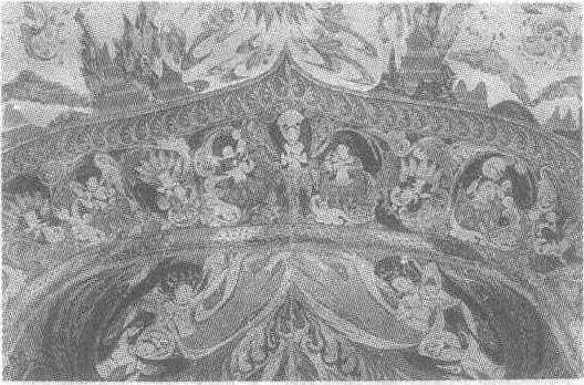 | 释义 | 化生图壁画西魏。纵100厘米,横215厘米。甘肃省敦煌县莫高窟第285窟西壁主龛龛楣壁画。将化生童子绘于龛楣是北魏和西魏常用的装饰方法。在卷草纹装饰的龛楣边缘内绘一组化生童子,他们被莲花托起,下半身为莲花遮挡,一个个清秀纯洁,在演奏不同乐器。莲花施以石青,历经千年仍保持鲜艳,与几乎不设色的童子身体形成强烈对比,素雅之中求得变化。童子的形象生动,线条成熟圆润,给人以冰肌玉肤之感。“化生”是佛教“四生”之一。佛教世界称众生出生为四类,即:胎生;卵生;湿生;化生。所谓化生,是无所依托借身、口、意、所表现出的言论、行动或潜在思想业力而忽然出现者。