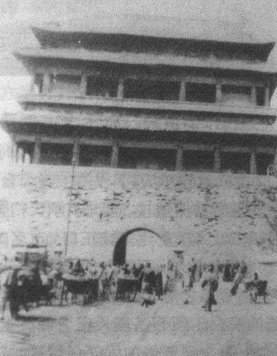 | 释义 | 北京崇文门位于北京城南墙东侧。元代称为“文明门”,俗称“哈德门”、“哈达门”,又称为“海岱门”。称“哈达门”系因元代哈达大王府在其地之故。明永乐十七年 (1419年) 十一月,将元大都城南墙向南扩展约两华里,重建城门,永乐十九年竣工,仍沿“文明门”之称。正统元年 (1436年) 重建城楼,增建瓮城、箭楼,正统四年竣工,改名为“崇文门”。城楼形制为三重檐歇山屋顶,面阔五间,灰筒瓦顶,绿色琉璃瓦剪边。城楼通高三十三点四米,宽三十九点一米,进深二十四点三米。弘治、正德、嘉靖、隆庆、万历诸帝时均曾修缮过此门。清代沿明旧制,乾隆二十五年(1760年)修缮,1921年曾对城楼进行修饰,1928年将箭楼台基及瓮城拆除。明清两代造酒业多集中在东郊、南郊,故规定凡运酒车须进崇文门交纳酒税。明清均于此门设总课税之所。